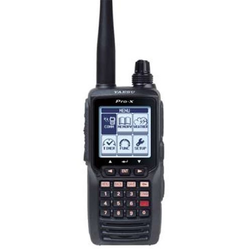 ‘Portable Two Way Radio, Band Type VHF, Output Watts 5, Number of Channels 200, 108 to 136.975 MHz Frequency, Display Type LCD, License Required No, FCC Narrow Band Compliant No, Length 1-3/10 In., Width 2-2/5 In., Height 5-1/5 In., X5 IP Rating, Navigation Aids VOR/ILS, Outdoor Range (Miles) 5, Channel Scan Yes, Color Black, Pro-X Series’